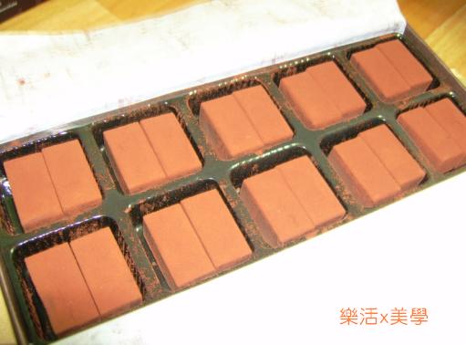 20顆小長方體形狀的巧克力整齊排列,Mr.Ray刮了一下表面讓大家看看它的"粉狀"程度。