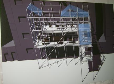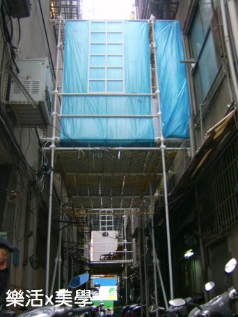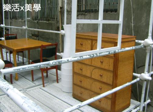 在違建的鷹架上放上傢俱,不止可以在上面走動,還可以坐著休息。