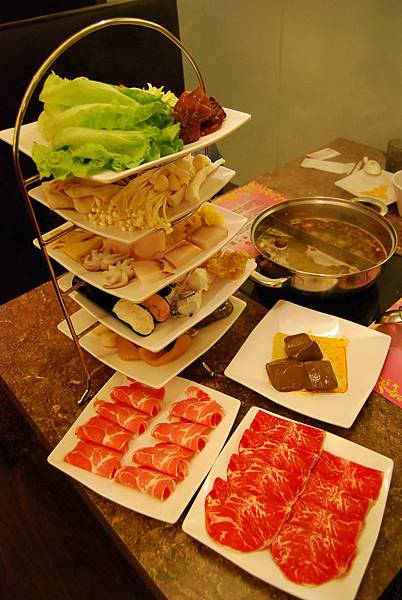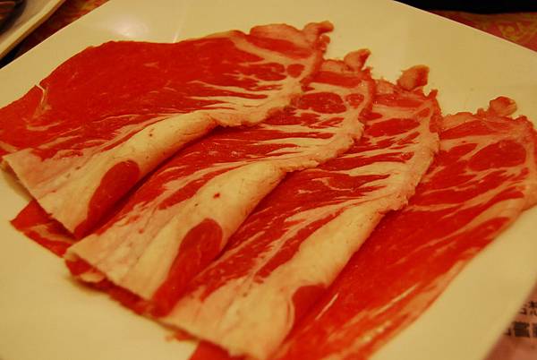 美國高級安格斯黑牛,肉質厚實中帶嚼勁,算是肉類中相當有份量的,另外還有豬五花、豬培根、小肥羊等等肉品可供選擇,因為它比較容易有飽足感,所以我沒有點很多盤,反倒是集中在後面部份(有哈根達斯跟明治冰淇淋)。