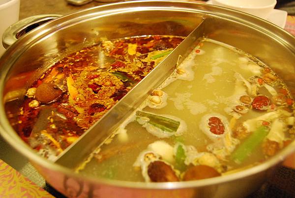 一開始我選的是兩種湯底,一邊麻辣、一邊養生鍋。在吃麻辣鍋的經驗中,我覺得真的是一分錢一分貨,百元臭臭鍋用的是「辣椒油」,吃起來只覺得有種不自然感。而知名麻辣鍋店的湯底好喝沒話說,麻而不辣的順口感也是特色之一,只是吃一餐往往上千元價位,對於一般上班族實在吃不消。