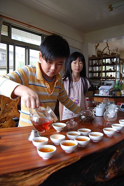 體驗完今天的課程之後,小主人為我們泡上一壺好茶,有趣的是,帶著專業架式倒著茶湯的小主人,從小而就耳濡目染,熟知許多泡茶學問,聽說未來也有興趣往茶藝師之路邁進呢!