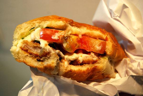吃起來有點像是在吃美式漢堡一樣,原來它加了花生醬,加上沙拉順口的滋味,形成完美的結合,交融在口中令人不禁一口接一口,如果再把上咖啡或飲料更佳。