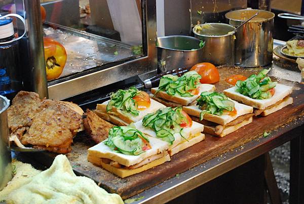 超~大片的烤豬排,與吐司上架大火快烤,做法豪邁有效率,這就是基隆夜市的人氣攤位-碳烤三明治!
