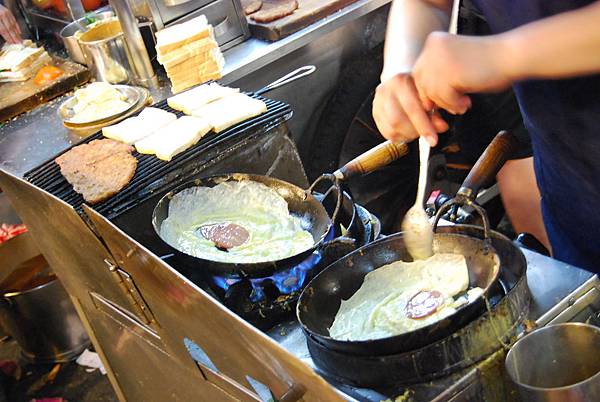 圓型小巧的火腿與雞蛋是必點項目之一,只見店員不斷打蛋煎蛋,一個人顧三鍋,真是太厲害了!