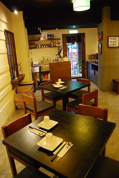 木製桌椅整齊排開,打上昏黃燈色,營造出像家一樣的溫馨氣氛。