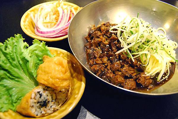 每天廚房現做炸醬,將魯肉與豆干炒香,吃起來不至太鹹,加上爽脆的小黃瓜絲,拌在溫熱的拉麵上,滑順之中帶點嚼勁,配上小菜更對味!