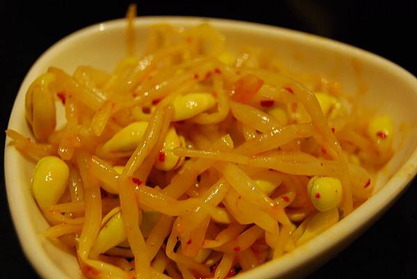 小菜的韓式泡菜、毛豆、辣豆芽也是店內的基本菜色,搭配主餐一起出菜,每道皆有一定水準!