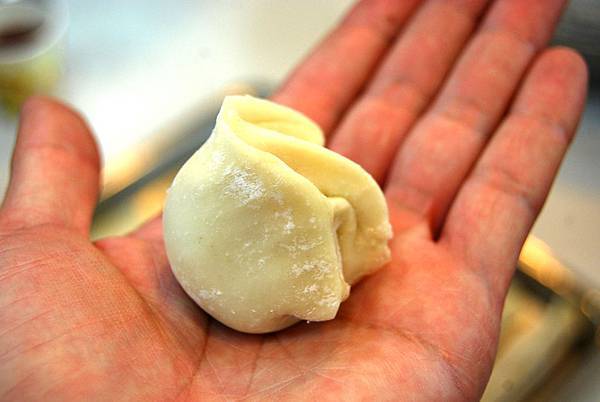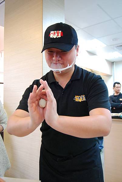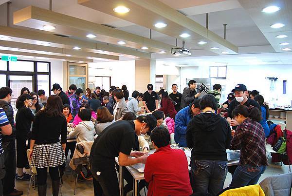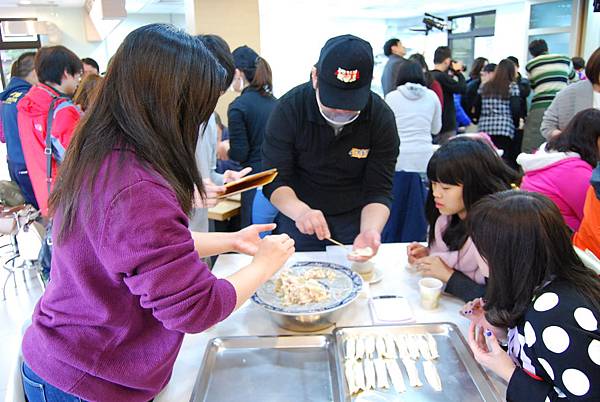 一進來就看到這個萬頭鑽動的畫面,驚叫聲此起彼落,原來,大師傅、二師傅、大師兄、二師兄全部都跑來教大家正港餃子做法,就算教了一遍,大家做出來還是奇形怪狀,真是神奇!