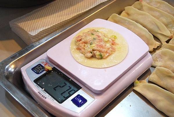 據統計,一天光是鍋貼水餃部份,就要生產2,000,000顆才能供產全台所需,所以在做餃子的速度就相當重要,一手入餡一手捏,完全不浪費零碎時間。