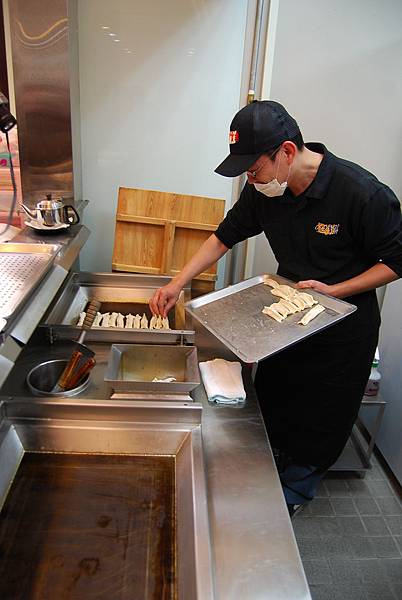 「有吃到鍋貼了嗎?還要不要鍋貼?」師傅很快的煎完一批又一批,讓我們都能吃到不同口味。