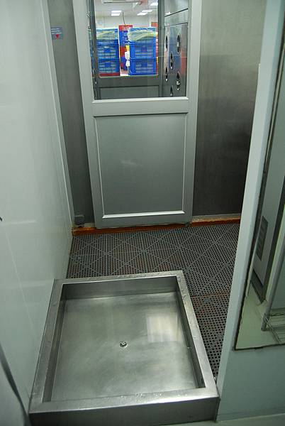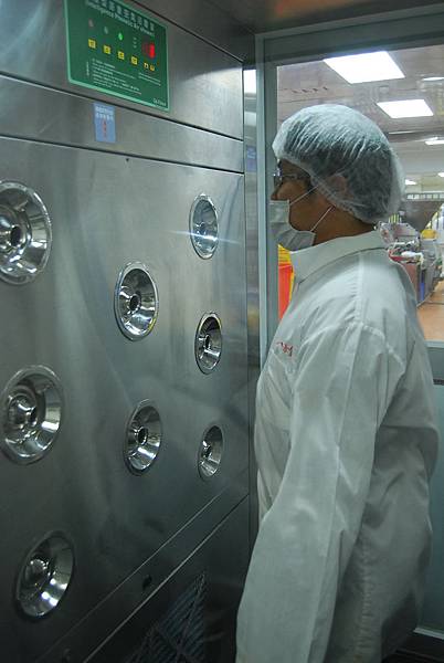 鞋子部份要先浸泡消毒水,進到製作區之前,也要經過浴塵室才能進到裡面。