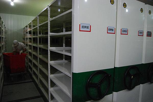 來到樓下,這裡的冷凍庫長得像圖書館一樣,為的就是分類存放方便,在管理上也能先進先出保持新鮮度。