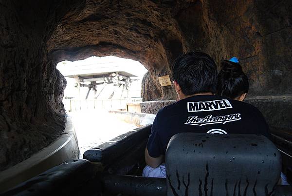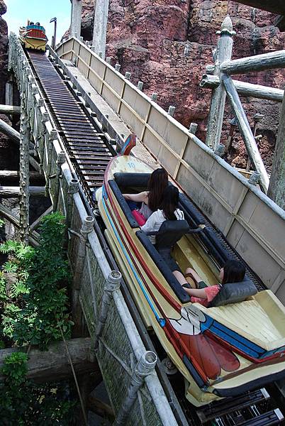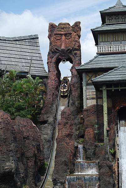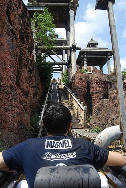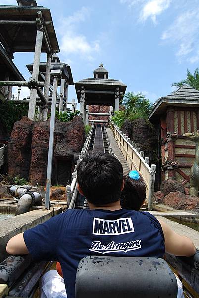 不知不覺第二次的爬坡又上到頂端啦,隨著水道漂漂,看到大鳥在上頭就代表要掉下瀑布啦!