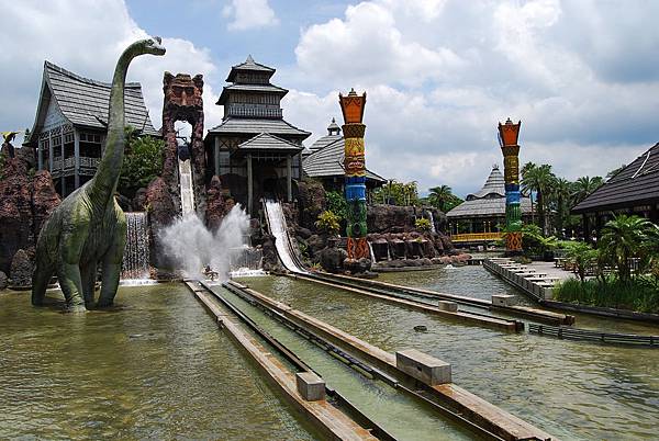 來到南太平洋區,一定要來玩這個火山歷險啦!它是六福村的經典人氣設施,2~4人坐著獨木舟往瀑布衝下,刺激又好玩!