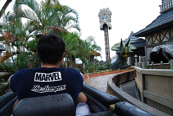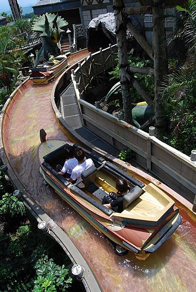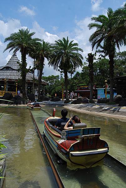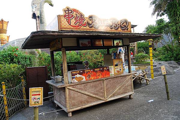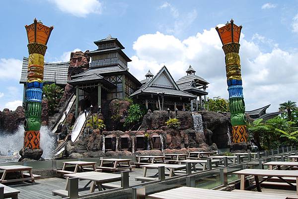 玩累了不妨買些吃的,坐在火山歷險中間的用餐休息區,看看水花與獨木舟上無助的人們,哈哈!