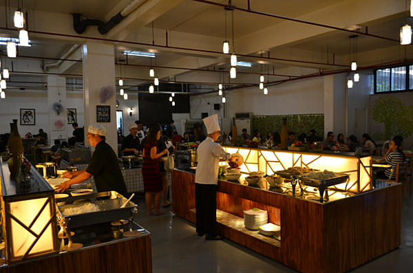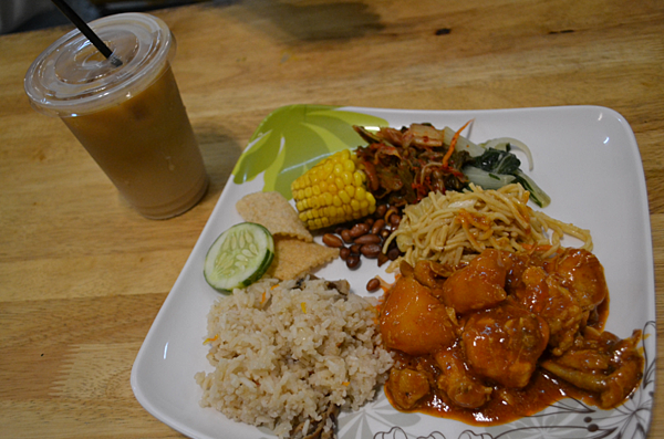 餐廳的空間可容納上百人,自助式的吧台有熟食及生菜沙拉,還有十分下飯的主菜,淋在白飯上面真是太好吃哩