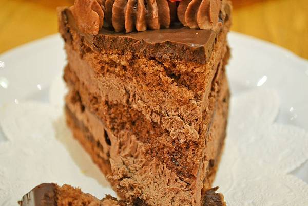 每天新鮮現做的限量蛋糕也很有特色,巧克力甘納許蛋糕以黑巧克力慕斯與巧克力杏仁蛋糕搭配,吃起來有著不同層次的口感,好像在吃巧克力塊與海綿蛋糕一樣,有點脆脆的,又帶點鬆軟質感,對於喜歡吃巧克力的人來說一定會愛上這一道蛋糕!