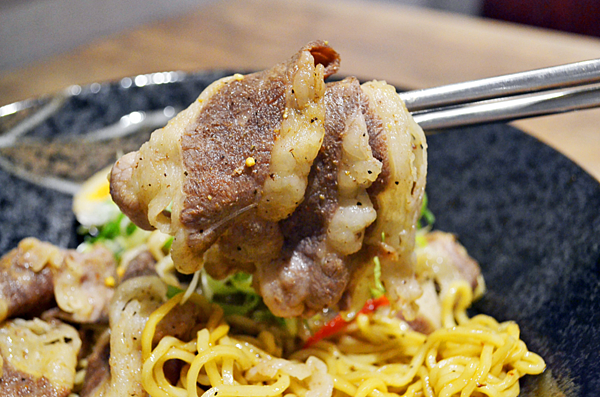 我覺得乾拉麵也超好吃的,像是炙燒黑牛雪花拌麵就很特別,拉麵將湯汁收乾與炙燒黑牛雪花拌在一起,加上大量青蔥與半熟蛋,整碗滿滿好料超豐盛的啦!