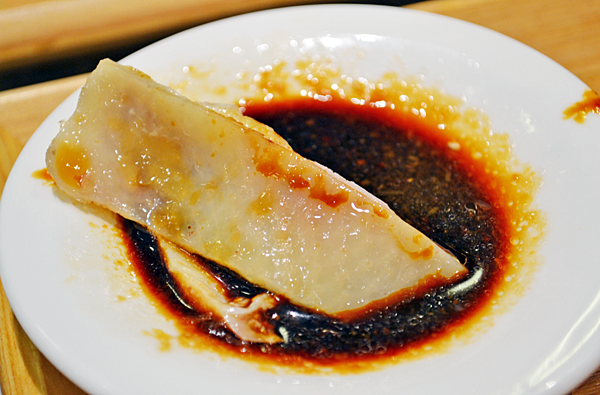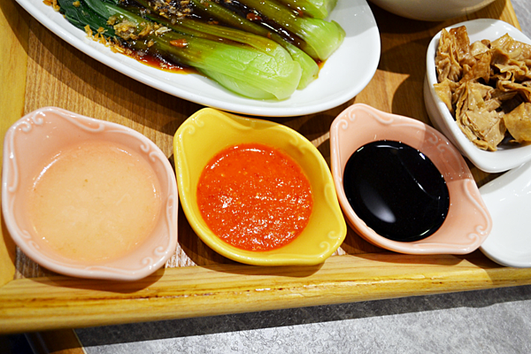醬料部份相當用心,有老抽醬油、辣椒與薑蓉,可以依照自己喜歡的方式各別分開吃,或是將三種醬料混合在一起,都能呈現不同層次的風味。