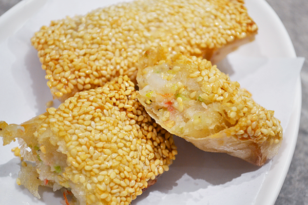 炸芝麻海鮮捲以滿滿的芝麻包覆,裡面包著鮮蝦與其它配料,一口咬下有著超酥脆的口感,也因為鮮蝦帶有彈性,所以每一口都是一大享受呢!