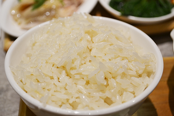 海南雞飯的關鍵之一就是雞油香米飯,讓米飯有著些許油亮感,吃起來更是香氣十足,米粒偏硬但飽滿厚實蠻好吃的,我覺得沾點老抽醬油也挺不賴,大家也可以試試看!